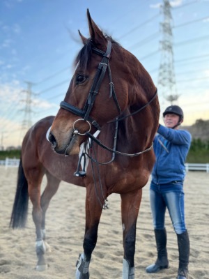2023年 マルベック号(阪神競馬場を引退後引取り) 2022年12月まで現役競走馬として活躍、その後引退となり引取り 乗馬調教後提携乗馬施設の会員様の自馬となりました。
