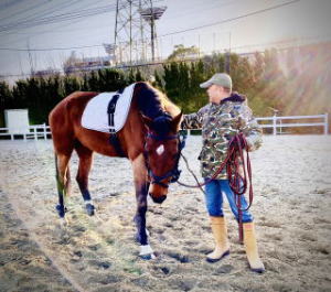 現在は福岡市と奈良県のの提携乗馬施設にて引き取った引退馬を調教しております。